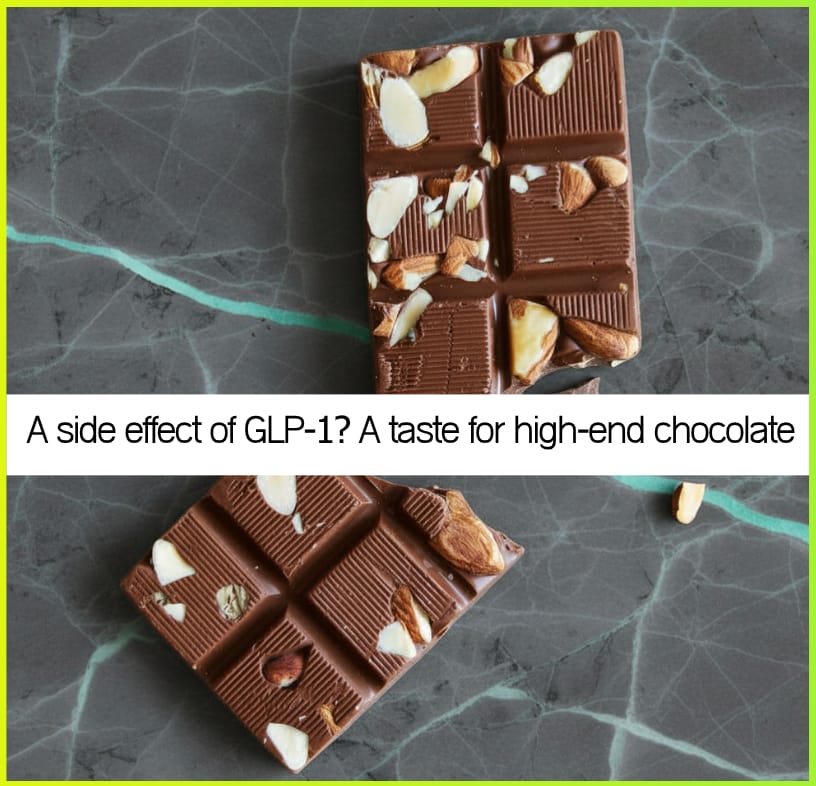 GLP-1 users in the US bought 17% more premium chocolate last year. Non-users: 6.5%. Households on weight-loss drugs make up 15% of the US population but 17.5% of total chocolate sales.